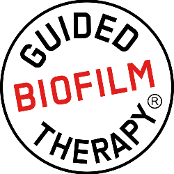 Guided Biofilm Therapy (GBT) is a structured, evidence-based hygiene protocol for managing dental biofilm. It sequences plaque disclosure to map where biofilm is present, gentle AirFlow with low-abrasive powder to remove biofilm and surface stains, targeted ultrasonic instrumentation for any remaining deposits, and final verification with personalised home-care guidance.